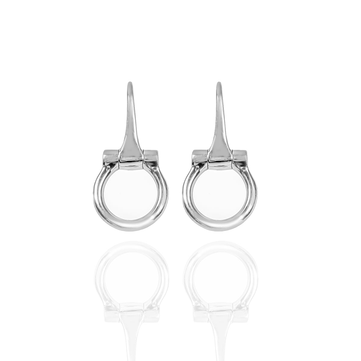 Featuring a pair of 12mm D-Rings, these equestrian earrings are constructed by hand and are fully articulated. The hinged D-Rings are set on sterling silver shepherd hook earrings.