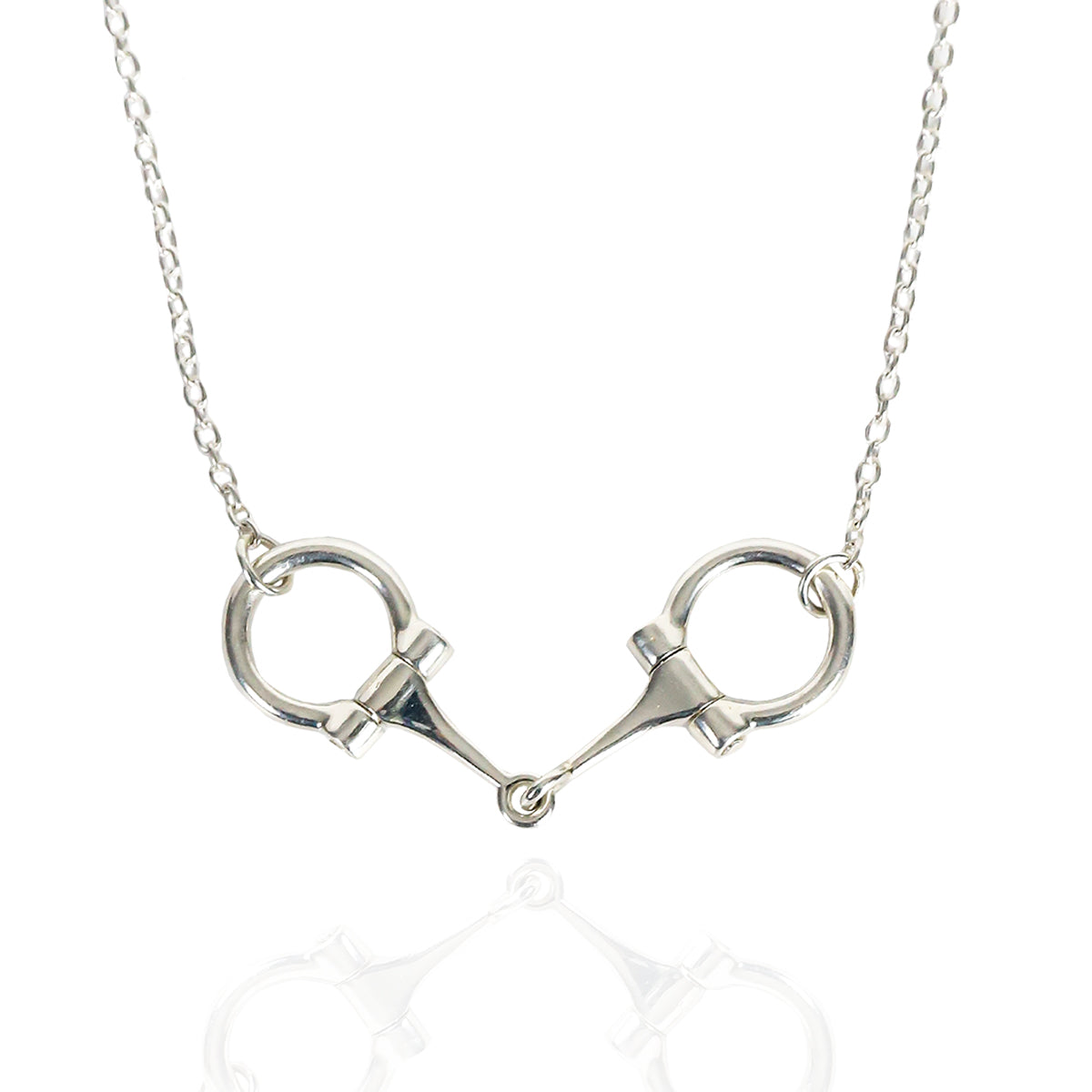 The Equestrian Sterling Silver 12mm Full Horse Bit Necklace features a fully articulated hinged D-Rings of 12mm width secured by oval links and Sterling Silver clasp.