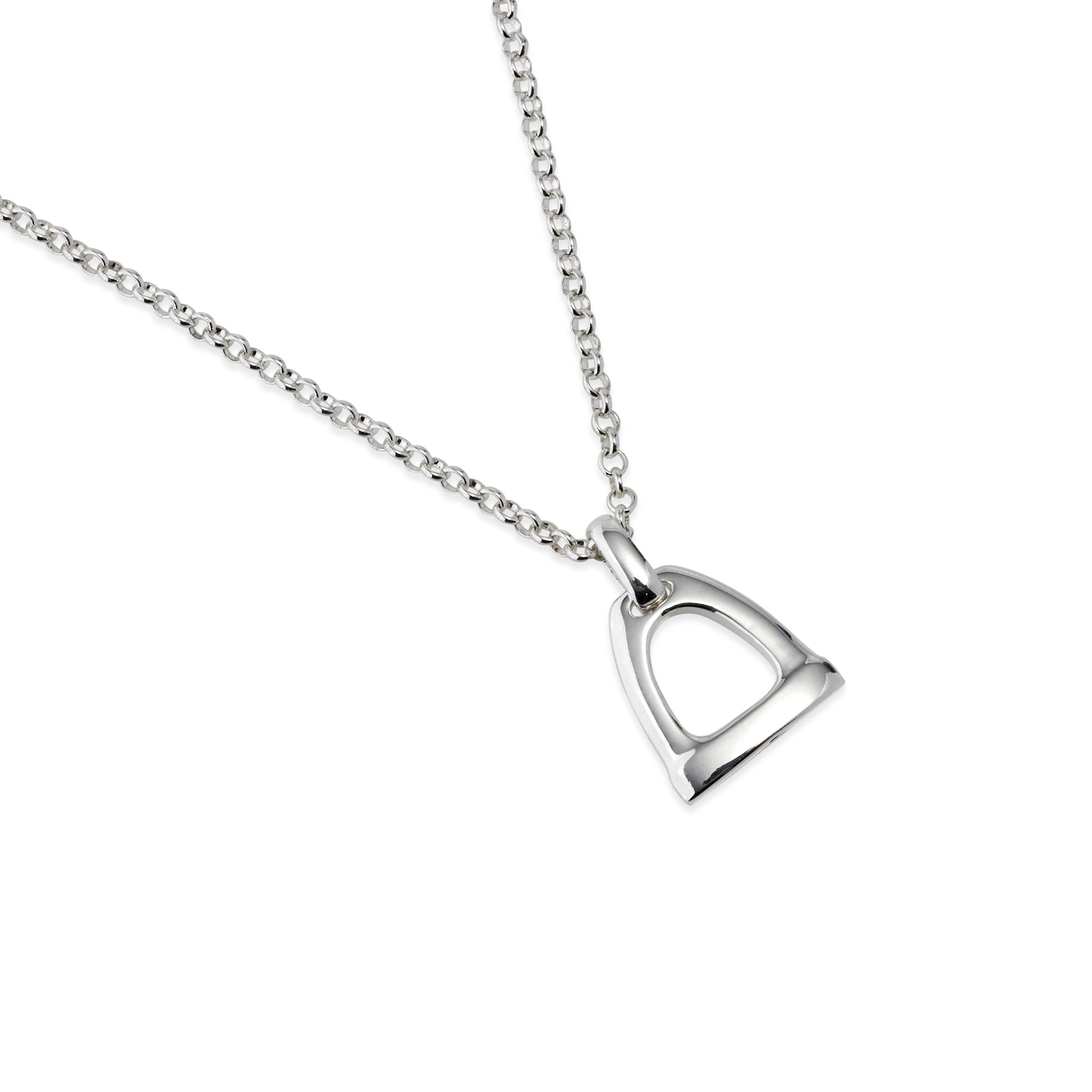 This sterling silver gold stirrup pendant is perfectly hand crafted, proportioned and articulated to drape elegantly from your neck.